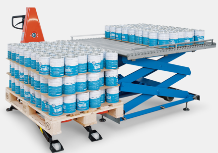 Znaky a výhody: Depaletizátor má valčekovú nerezovú plochu pre depaletizáciu Depaletizátor zahŕňa hydraulický zdvihák so senzorom STOP pre zastavenie v správnej výške Depaletizátor zah