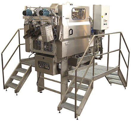 Znaky a výhody: Lúpačky PDS/R sú vyrobené z nerezovej ocele a hliníka Lúpačky vykonávajú lúpanie a odjadrovanie v segmentoch alebo v krúžkoch a jablká kúskujú do priemeru min. 60 mm a max. 100 mm S kompletne automatizovaným procesom, PDS/R lúpačky lúpu, jadrujú a krájajú jablká do rôznych tvaroch pri maximálnej rýchlosti 100 plodov za minútu PD lúpačka ponúka základnú štruktúrú: lúpací a odjadrovací stroj PDS je lúpačka, ktorá okrem lúpanie a odjadrovania vykonáva krájanie jabĺk na segmenty PDR je lúpačka, ktorá lúpe, odjadruje a krája jablká na plátky Typ PDS/R 25 PDS/R 50 PDS/R 75 PDS/R 100 Výkon (kW) 1.20 2.50 3 3 Dĺžka (mm) 2700 2700 2700 2700 Šírka (mm) 1100 1200 1550 1700 Výška (mm) 2500 2500 2500 2500 Váha (kg) 700 900 1100 1300 Vzduch (nl/min) 180 270 380 500 Tlak (bar) 4-5 4-5 4-5 4-5 Ovocie/min 25 50 75 100 Voda (l/hod) 5 7 8 9